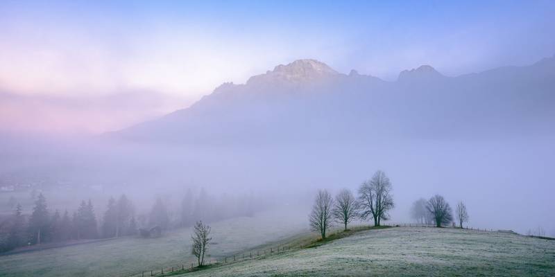 Das Birnhorn bei Leogang im Pinzgau, im morgendlichen Nebel.