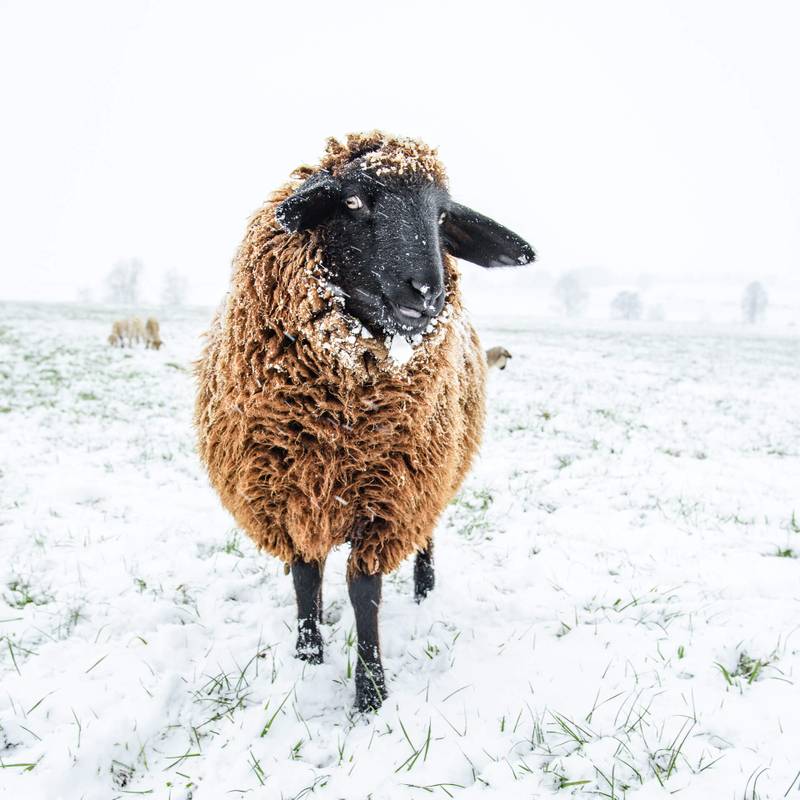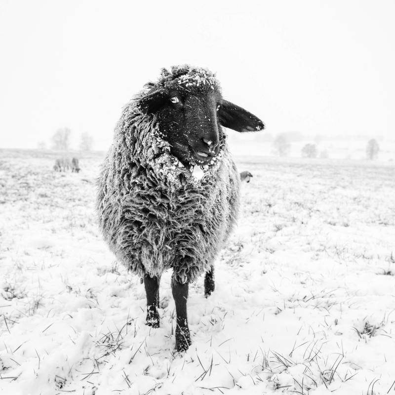 Auch das „Brave Schwarze Schaf – Matilda“ genießt mit seiner glücklichen Herde das saftige grüne Gras, das langsam von sanften Schneeflocken bedeckt wird. Sein freundlicher und Aufmerksamer Blick vermitteln ein wohliges Gefühl von Geborgenheit und Zufriedenheit.
