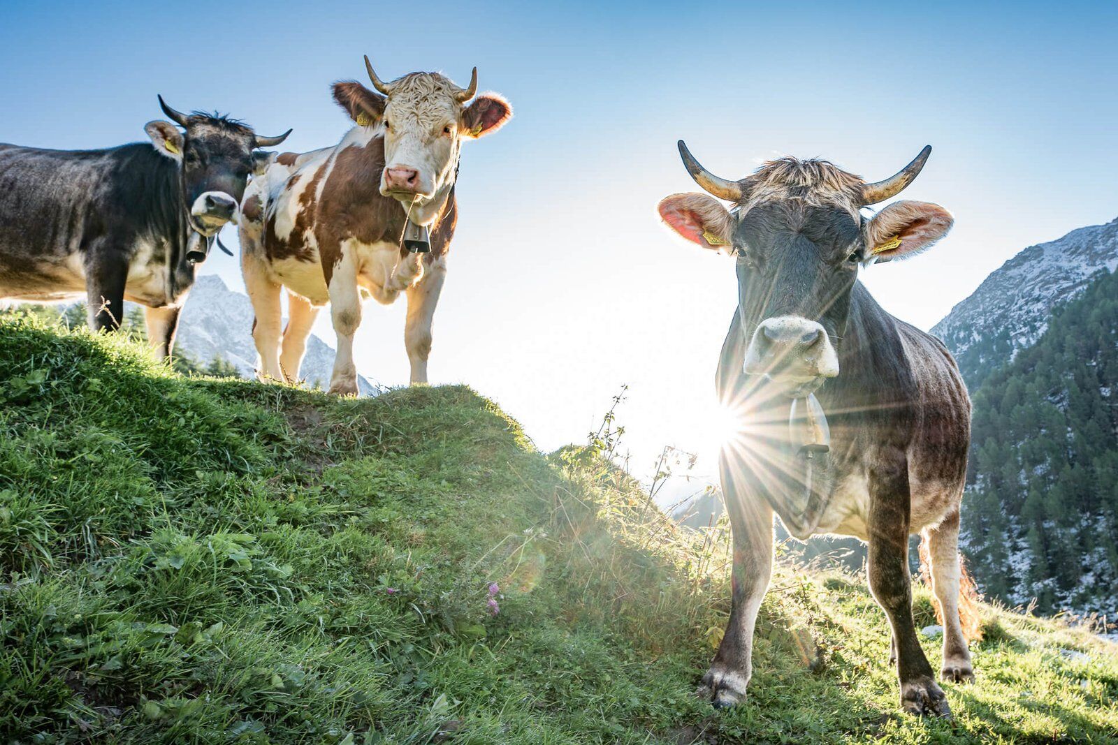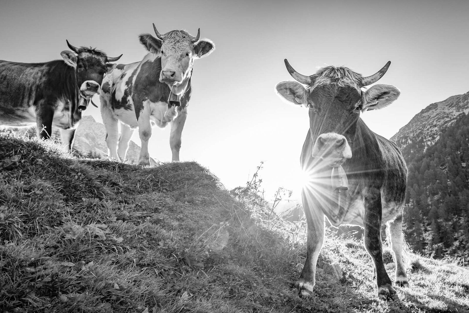 Am Morgen bei Sonnenaufgang schon auf einer Alm zu sein ist ein wohltuendes Gefühl. Das wissen auch die Kühe zu schätzen. Diese drei „Kuh-Models“ haben sich dazu bereit erklärt eine harmonische Formation zu bilden. Möge die Aufnahme Dich begeistern und Dir täglich Kraft und Lebensfreude schenken.