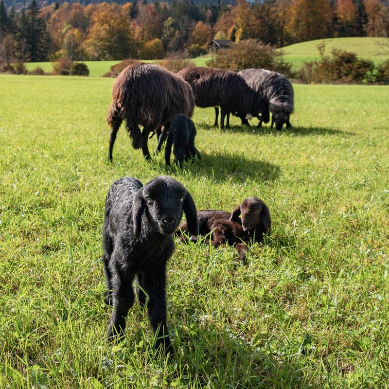Ein schwarzes Lamm im Sonnenschein, so unschuldig und hold.