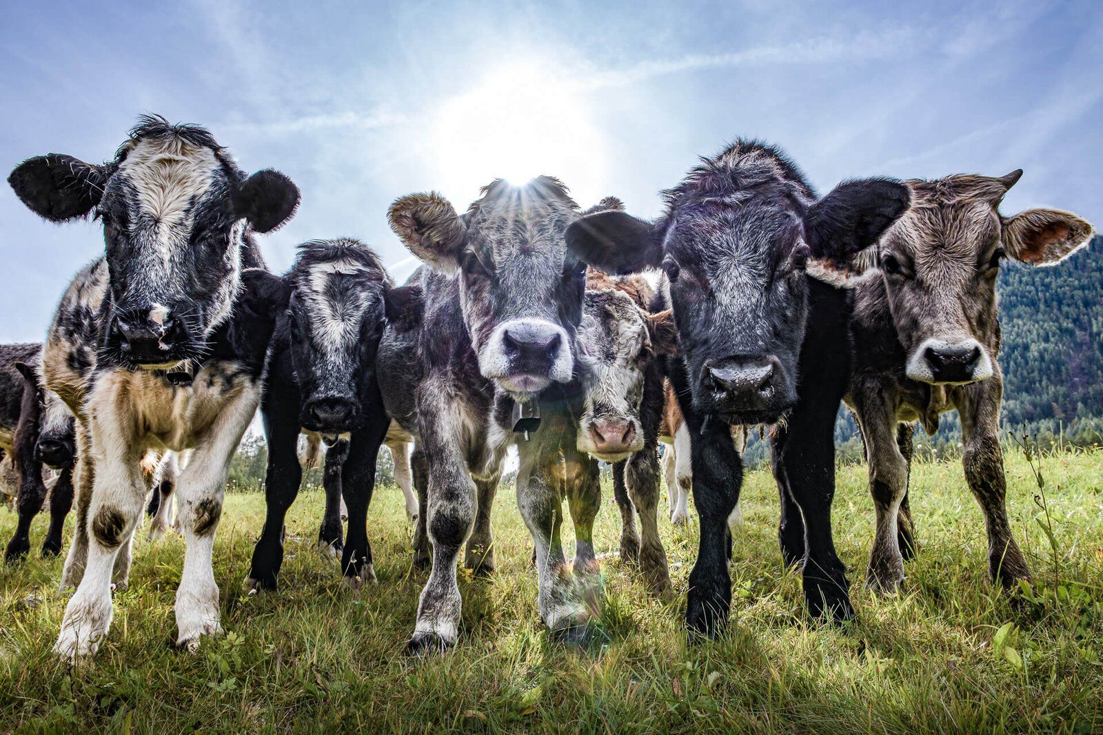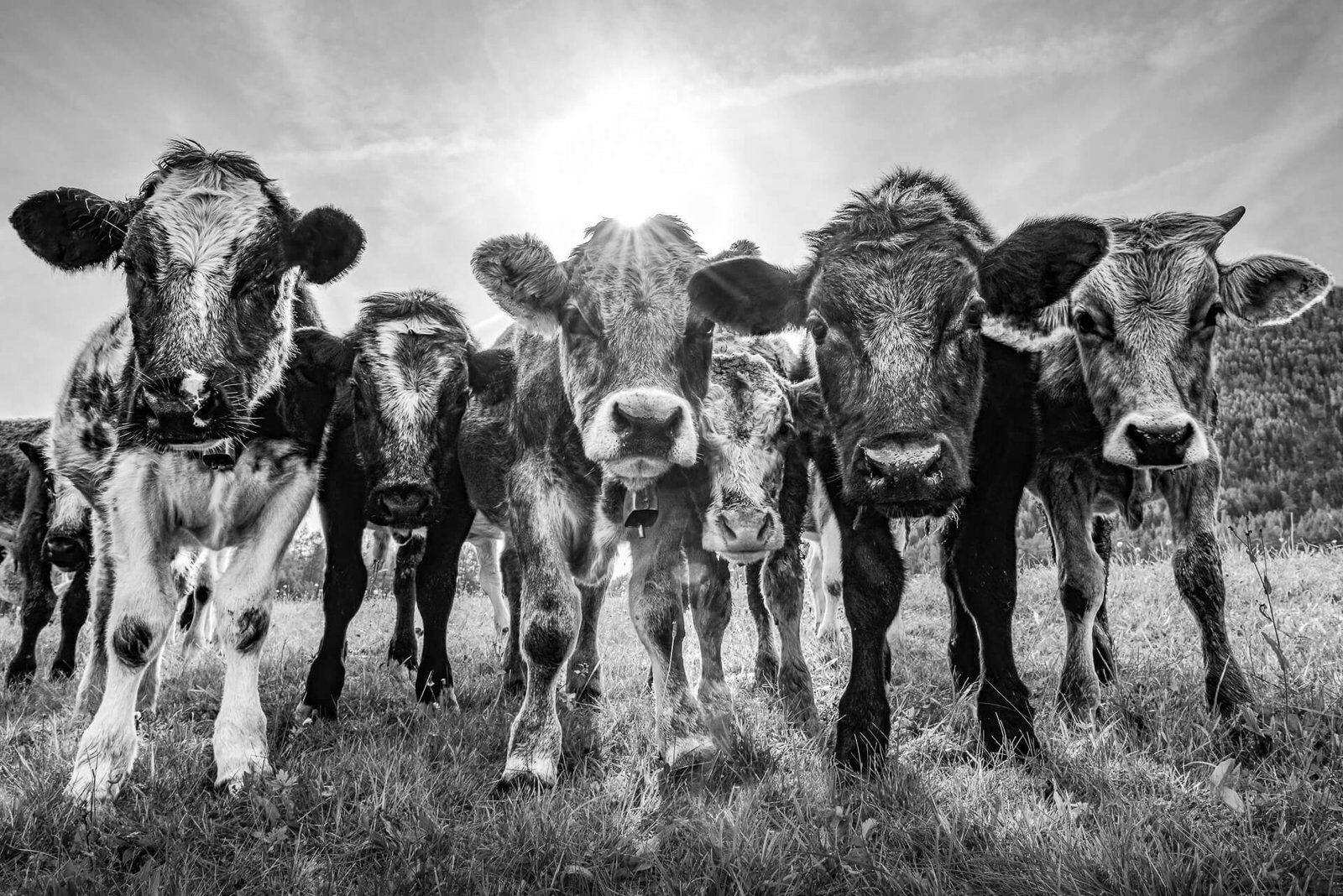 Diese neugierigen Kälber schauen Dir direkt entgegen und bringen mit ihrem Blick ein Lächeln ins Gesicht. Die Sonnenstrahlen hinter ihnen verleihen der Szene einen magischen, friedlichen Charme. Spür die Lebensfreude der Natur und lass Dich von diesem Moment verzaubern!